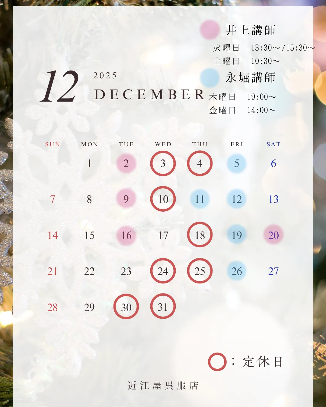 | 10:30~ | 井上講師 | 永堀講師 | |||||