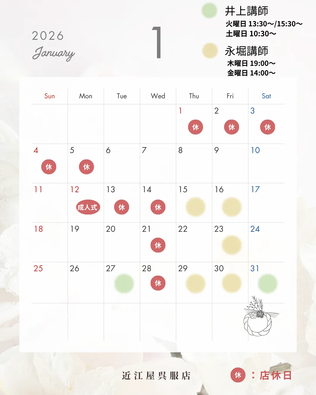 蕨宿近江屋呉服店では、きものの着方の基本と知識からTPO、染織、美しい着方を学べます。